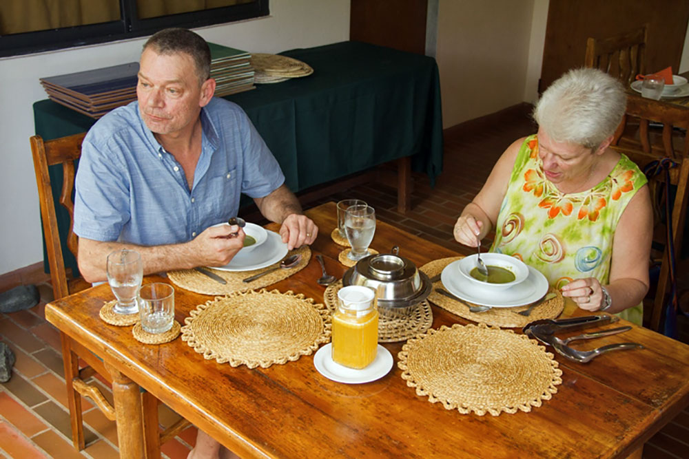 Dinner menus are "table d’hôte" and are crafted to reflect the unique, multi-ethnic reality of Trinidad and Tobago. Delicious light lunches are also served. Bread is whole wheat and homemade and water is from a spring located on the property. Guests often comment on its "golden" taste.